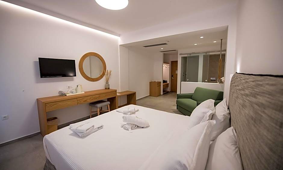 Set on the Skopelos shoreline, Natura Luxury Boutique Hotel radiates relaxed island charm with direct beach access and an inviting outdoor pool. A rooftop infinity pool adds a glamorous touch for sunset swims, available seasonally and reserved for adults, offering sweeping views over the water. Balconies and terraces accompany select accommodations, and landmark views underscore the serene island atmosphere.