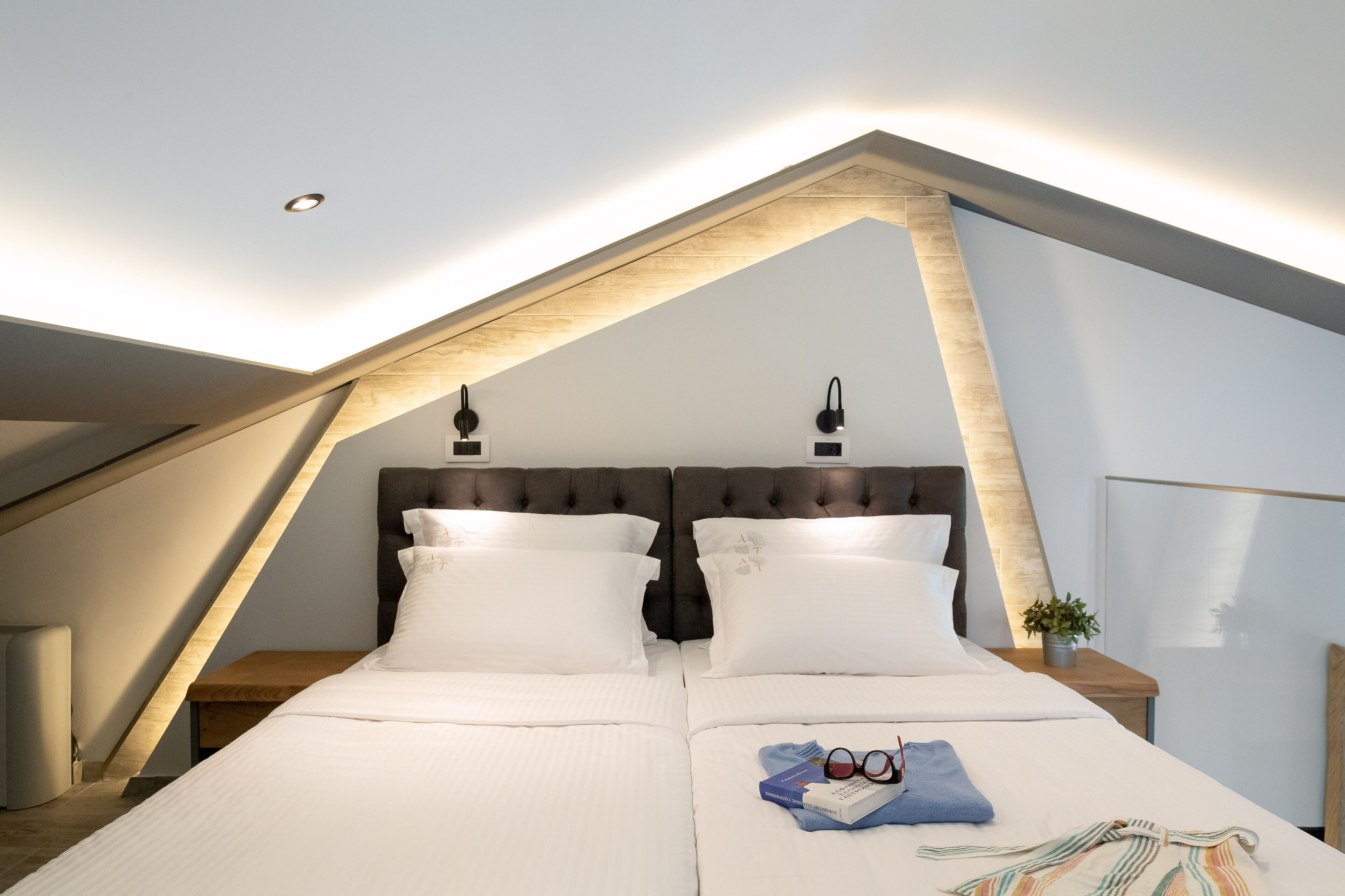 Offering pool views, this executive suite is located across 2 floors. The first floor includes a queen size bed, single sofa and balcony with a pool. The attic room features 2 single beds. The whole property is suitable for up to 5 guests.