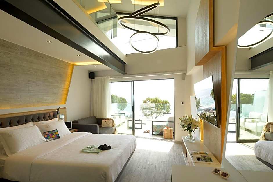 Offering sea views, this Junior Front Suite in Akti Toroni offers the ideal setting for your special romantic summer vacation. The room features a spacious private balcony, queen-size bed, sofa chair and can accommodate up to 3 guests.