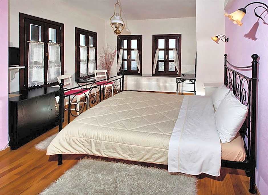 Spacious suite with panoramic views of Volos Town or scenic Makrinitisa village and fireplace. Features a large seating area.