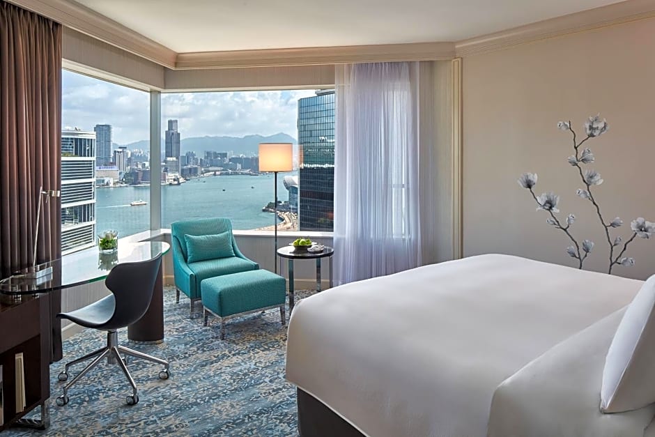Room overlooks the Victoria Harbor and features a 55-inch flat-screen TV, DVD player and tea/coffee making facilities. Also included is a spacious work desk with connectivity hubs, a safe and marble bathroom with separate shower and bathtub. Daily newspaper is provided. Features Executive Lounge benefits including: - continental breakfast, afternoon tea and evening cocktails - business services and usage of Executive Meeting room (first come first served)
