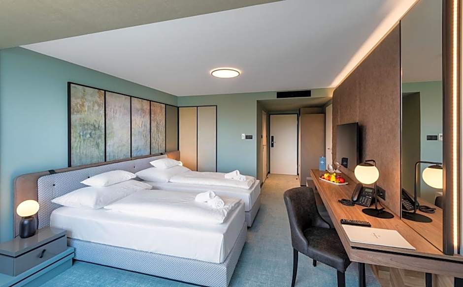 Featuring free toiletries and bathrobes, this family room includes a private bathroom with a shower and a hairdryer. The spacious air-conditioned family room features a flat-screen TV with cable channels, a private entrance, a mini-bar, a wardrobe as well as lake views.
