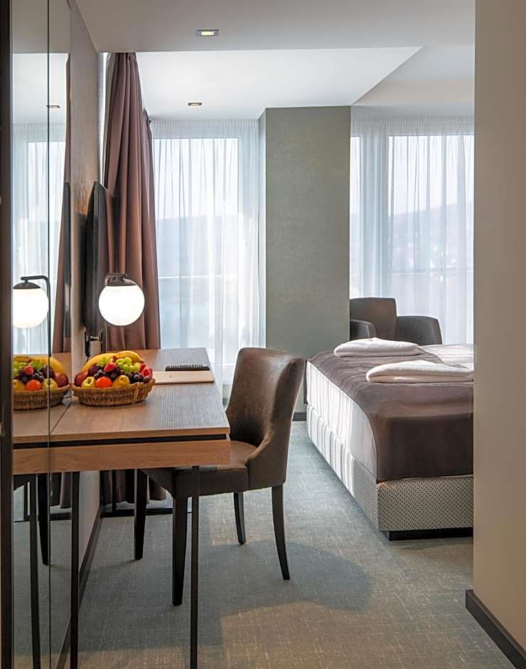 Guests at Hunguest Hotel Bál Resort can spend their time enjoying the leisure amenities offered by the hotel. There is a private beach area where guests can relax and enjoy the sun. The hotel also features an indoor swimming pool and a kids' pool, perfect for both adults and children to have a refreshing swim. Water sports facilities are available on site for guests who enjoy activities like canoeing or windsurfing.