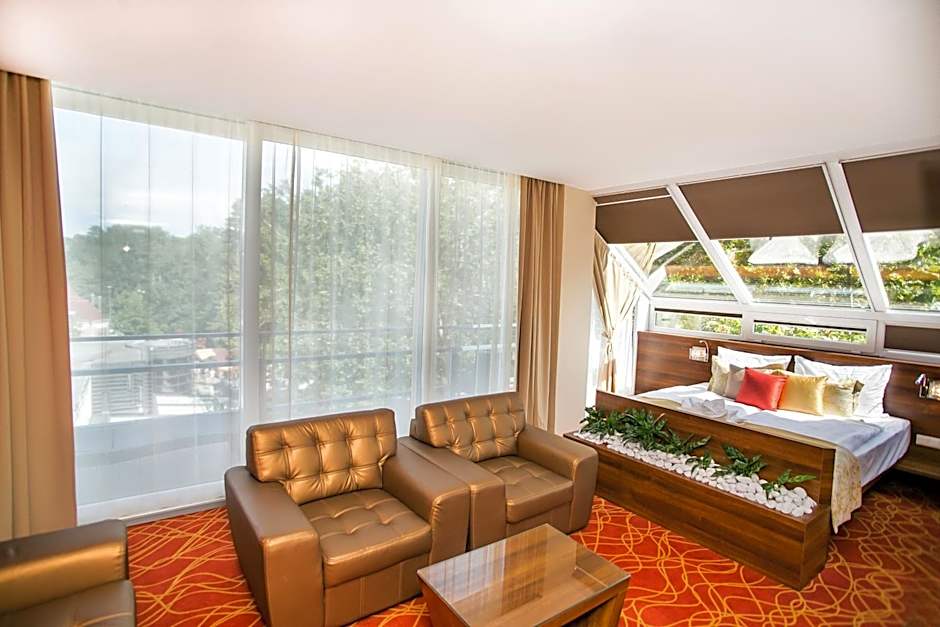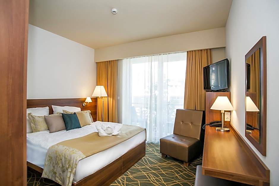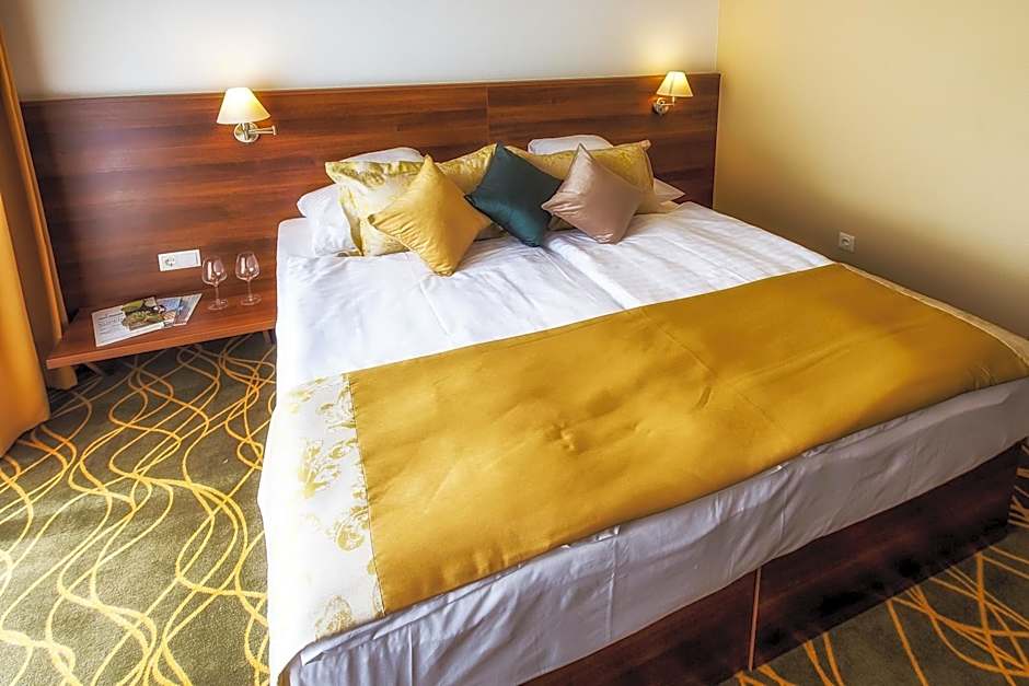 Indulge in pure relaxation with the hotel’s sensational spa and wellness packages, including a free spa area, sauna, steam room, and massage services (available at extra charge). Stay fit in the complimentary fitness center or unwind on the terrace while enjoying views from your soundproof, air-conditioned room. Food lovers will appreciate the on-site restaurant and bar, perfect spots for savoring local delicacies and unwinding after a day of exploring Hévíz’s famous thermal lake or playing a round at the nearby golf course (also at additional costs).