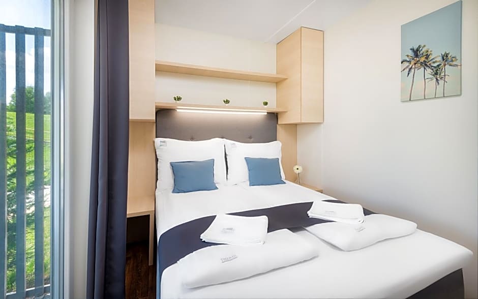 Get ready to experience a comfortable and spacious stay in the Studio or Two-Bedroom Apartments at Tisza-tó Apartmanpark. The Studio Apartment can accommodate 2 adults and offers twin beds for a good night's sleep, while the Two-Bedroom Apartment can accommodate 4 adults with a double bed, twin beds, and a sofa bed. Whether you're traveling with a loved one or a group of friends, these well-appointed apartments are the perfect retreat after a day of adventure.