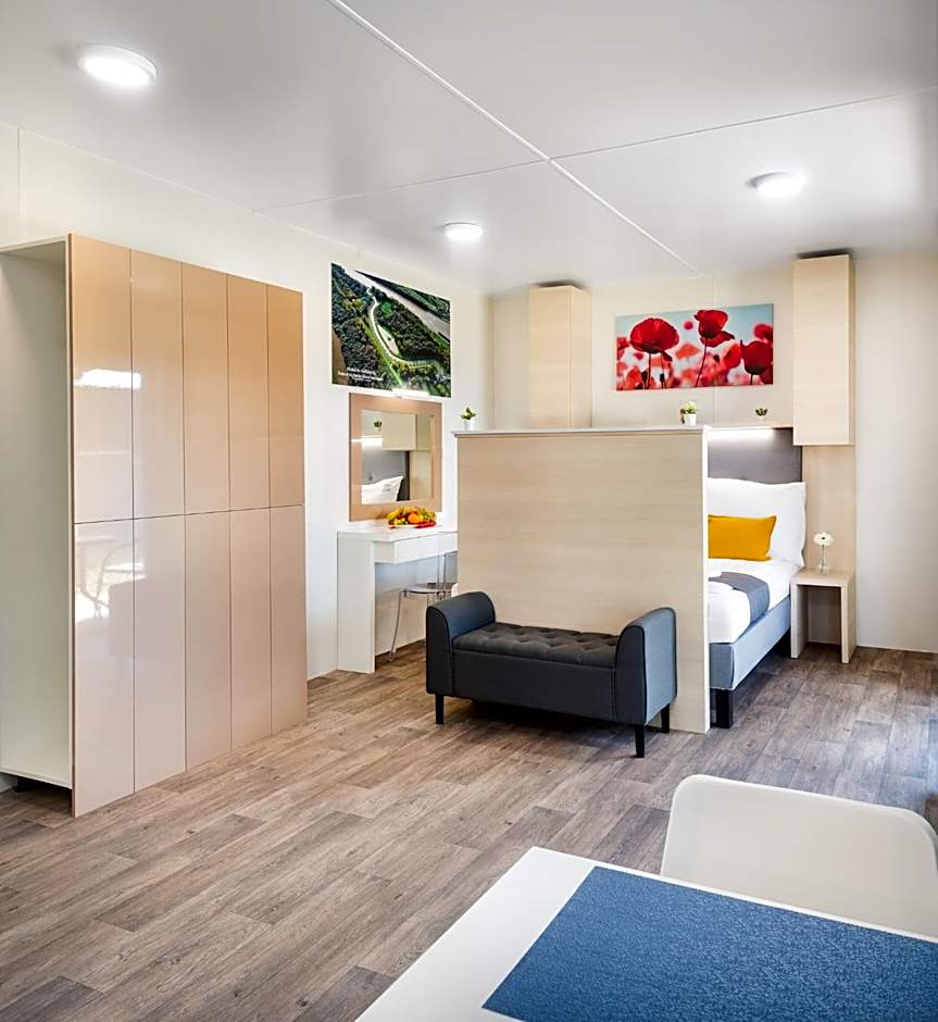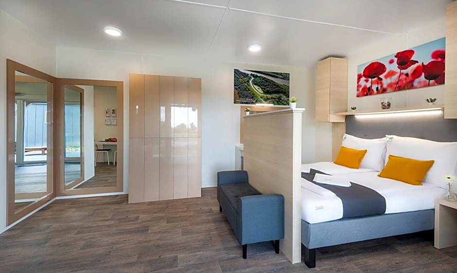 The hotel offers Studio Apartments and Two-Bedroom Apartments. The Studio Apartments have a room size of 172 sqft and accommodate 2 adults with 2 twin beds. The Two-Bedroom Apartments have a larger room size of 344 sqft and accommodate 4 adults with a sofa bed, 2 twin beds, and 1 double bed. Smoking is not allowed in either type of room.
