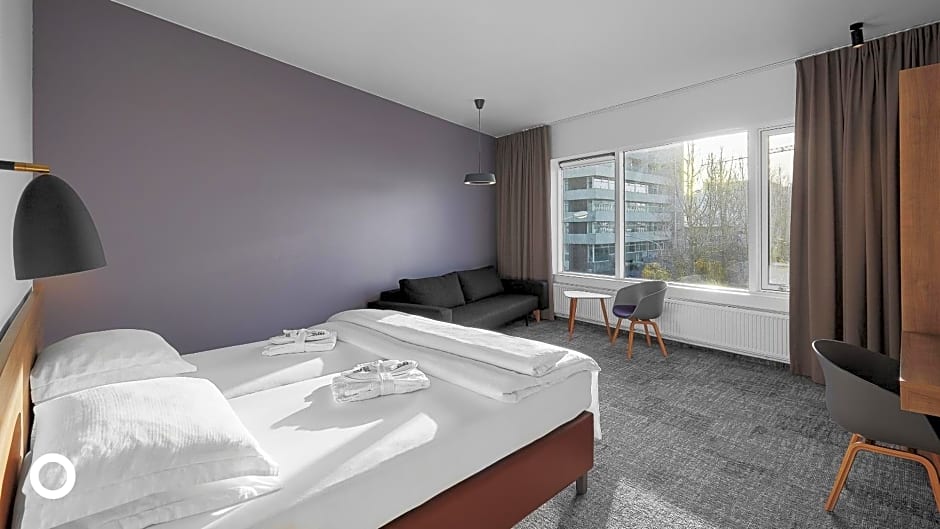 Midgardur by Center Hotels accommodates check-ins starting from 02:00 PM and ending at 08:00 PM. The rooms should be vacated by 11:00 AM.