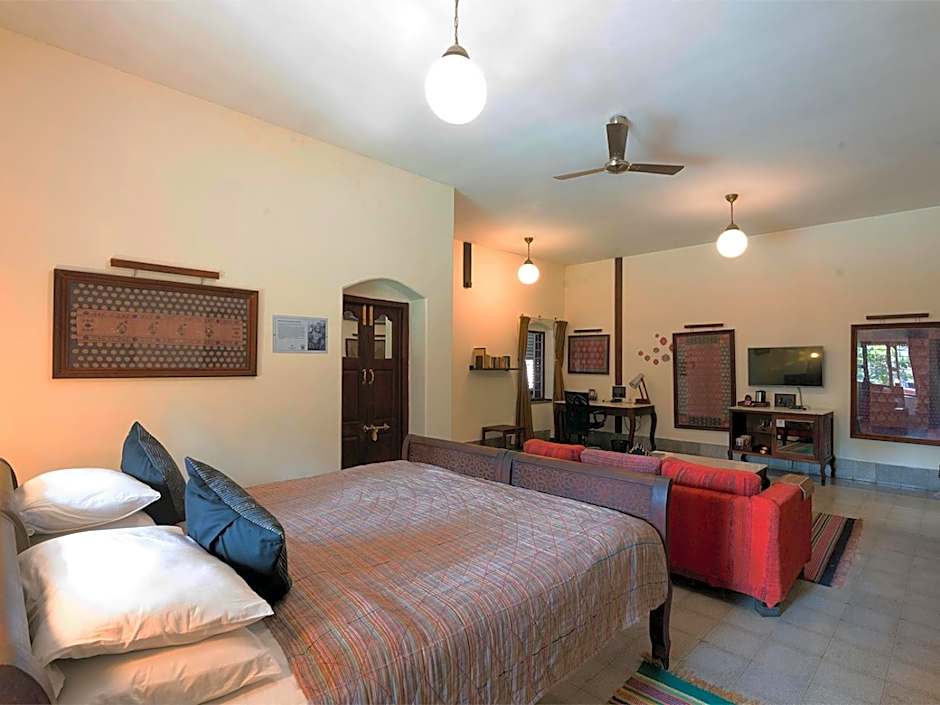 This room has a worktable. Most of them have a swing and are equipped with all modern amenities. They have a spacious bathroom and a dressing area.