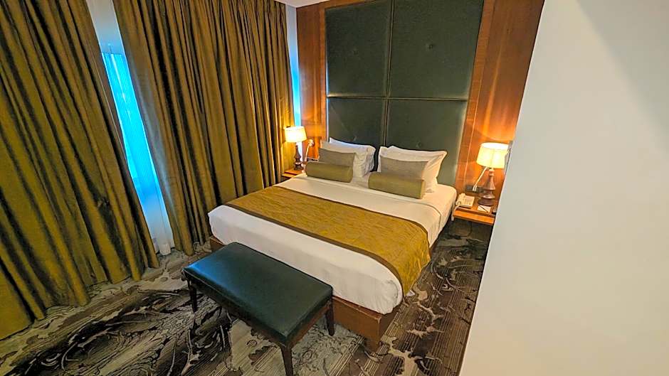 DELUXE DOUBLE ROOM is 258 square feet and includes a king-size bed 150-183 width plus extra beds on demand and ironing set.