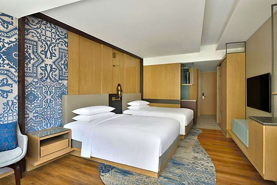 Food lovers will be spoiled for choice with four on-site dining options. The Aravalli Kitchen serves American and local dishes, Huang offers a mix of Japanese, Jewish, and Asian flavors, Glaze presents modern American fare, and Olive Grove Pool Bar pairs American, Chinese, French, and Indian bites with poolside vibes.