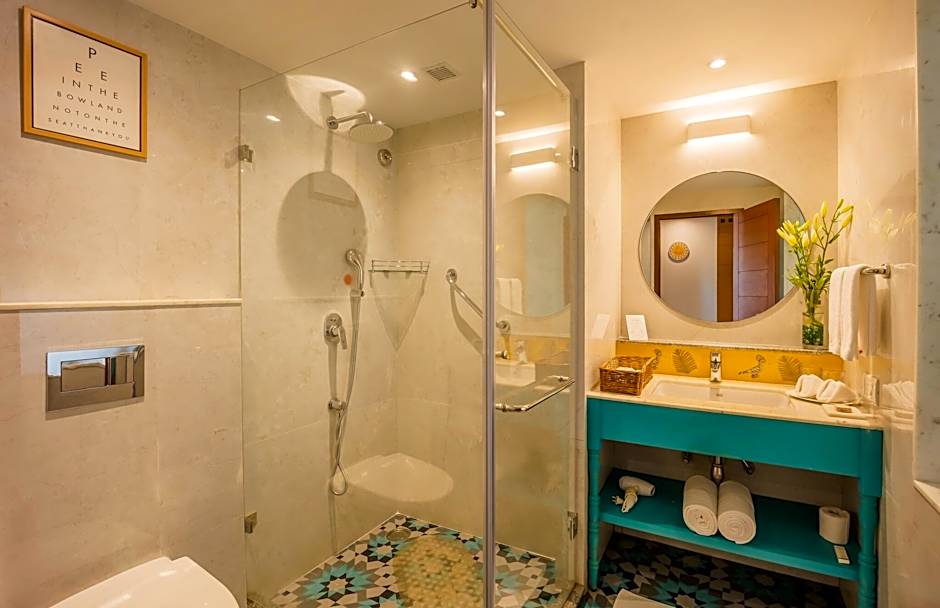 Room is fitted with a 43" Flat Screen TV. A sofa bed is provided. It includes customized room, balcony and bath amenities.
