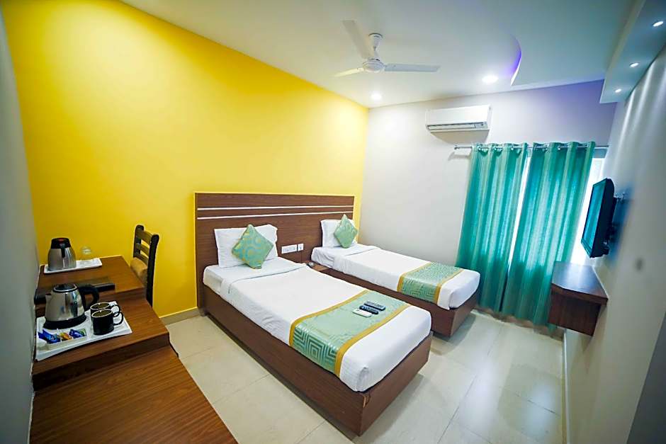 For those seeking a relaxing stay with comfortable accommodations, Hotel Golden Leaves offers four types of rooms to suit diverse needs. Whether traveling solo or with a companion, the range of room sizes and bed configurations ensure a pleasant stay. The cozy Single Room, with its 108 square feet of space, is perfect for solo travelers. Couples or small families may opt for the spacious Deluxe Room or the Twin Room, both ideal for accommodating up to two adults and one child. All rooms feature inviting queen or twin beds, giving guests a comfortable place to rest after a day of exploring the vibrant city of Hyderābād.