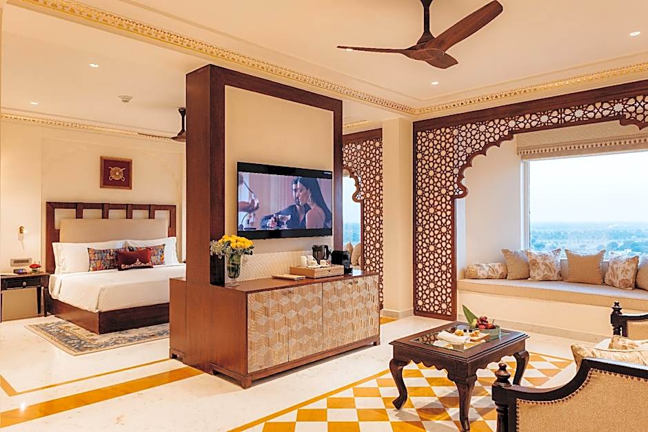Nestled on Tonk Road, the luxurious Anantara Jewel Bagh Jaipur offers a regal escape just a short drive from Jaipur’s lively center, sitting approximately 13,6mi away. This 5-star oasis boasts a vibrant array of amenities including an outdoor swimming pool, a relaxing spa and wellness packages, a fully-equipped fitness center, and a charming garden with picturesque views. Whether you're unwinding in the sauna, enjoying live music, or taking a dip on the sun-soaked terrace, every moment here feels indulgent and inviting.