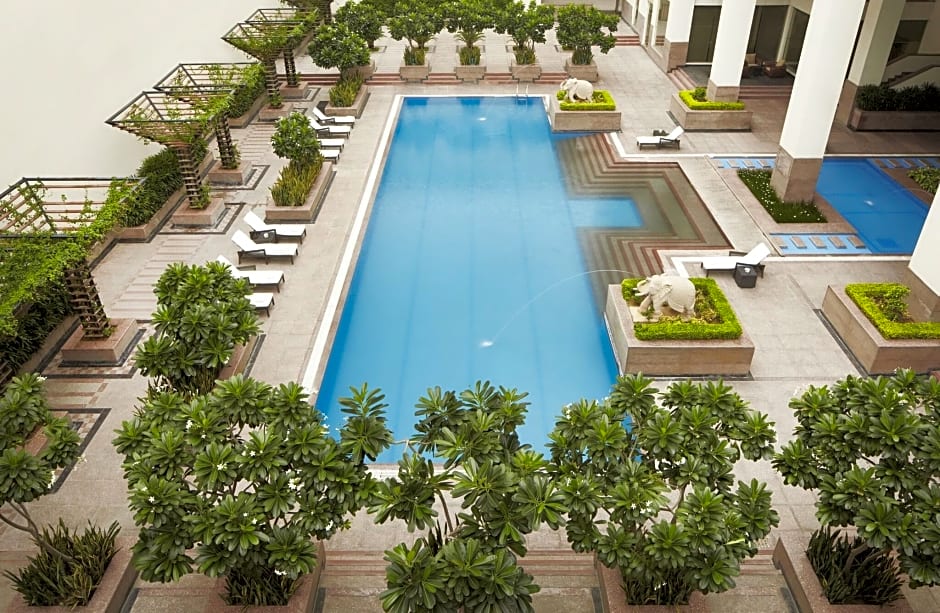 Welcome to the Jaipur Marriott Hotel, a luxurious 5-star property located in the vibrant city of Jaipur, India. Situated near Jawahar Circle, Ashram Marg, the hotel is just 5,4mi away from the bustling city center, offering a peaceful retreat while still being conveniently close to all the attractions.