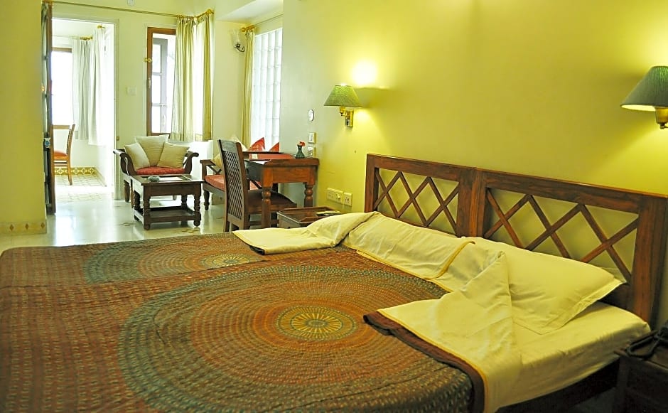 Guests staying at the Om Niwas Suite Hotel can make the most of their time by enjoying the diverse leisure amenities available. They can relax with a meal at the on-site Amaltas Restaurant offering American, Chinese, and Indian cuisine in family-friendly traditional ambiances. Other leisure options include spending time in the garden, on the sun deck, or terrace. Additionally, the hotel's pet-friendly policy means guests can bring their furry friends along. For those with accessibility needs, the presence of an elevator and wheelchair accessibility ensures easy movement around the hotel. The 24-hour front desk and business center also provide convenience and flexibility for those looking to mix leisure with work during their stay.