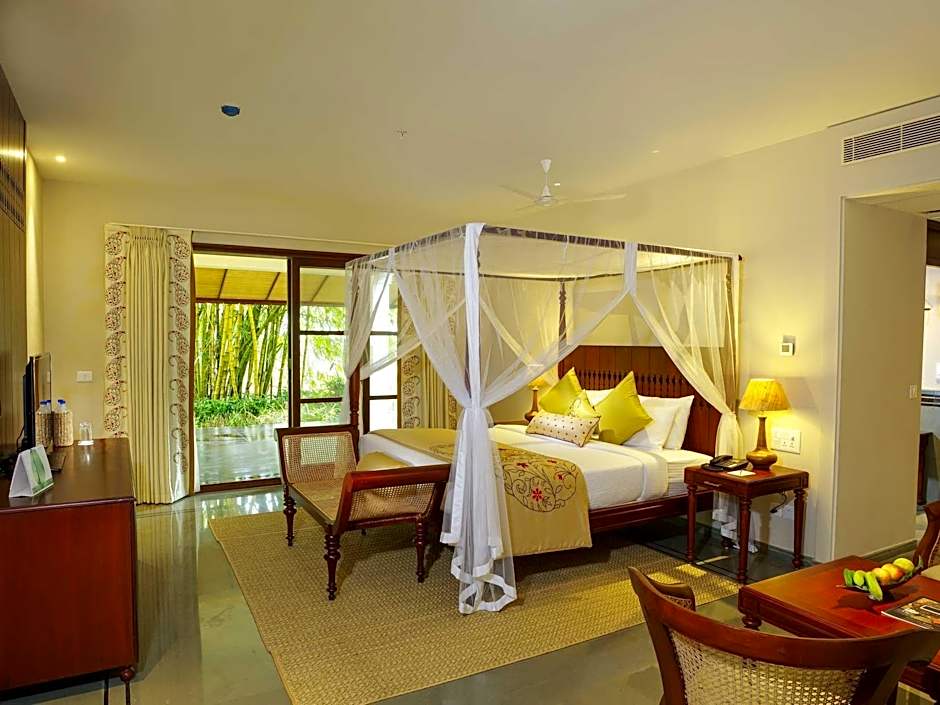 Nestled in Kumarakom, this 5-star retreat pairs tranquil water views with modern luxury. Relaxation comes easy with a private pool and spa and wellness packages, plus an outdoor swimming pool for sun-soaked days. Dining options showcase Cafe Samsara with Indian, Italian, pizza, seafood, local, Asian, and international flavors, while a second on-site restaurant offers a family-friendly, modern, and romantic setting with Chinese, Indian, Italian, seafood, local, Asian, international dishes and GrillBbq.