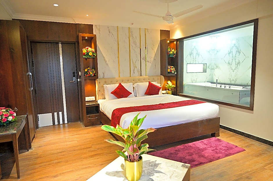 Accommodations span several styles, including Superior and Premium (both non-smoking and sized for two adults), plus the Jacuzzi King (one king bed) and Executive (non-smoking, for two adults). A Suite offers 1615 sq ft of space for two adults and one child, while the Deluxe Double Room clocks in at 1076 sq ft and the Standard Room at 1292 sq ft—each with a king-size bed in the listed options and designed for non-smoking stays.