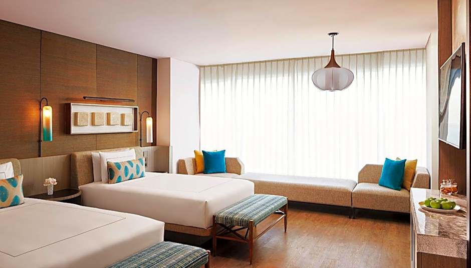 Embrace breath-taking views of the sea as you lounge on your bed. The room offers a luxurious 40 sqm of ergonomic space and the comforts of twin bed, a 4 fixture washroom, a Tea Coffee maker, Flat-screen HDTV, mini-bar, and complimentary WiFi for 4 devices.
