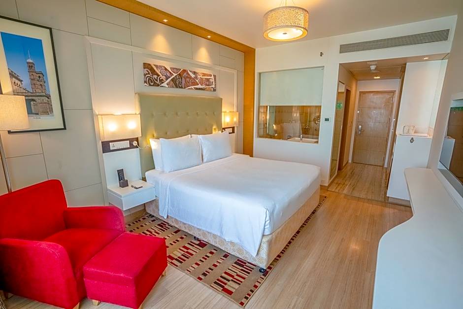 Radisson Blu Pune Hinjawadi is a 5-star hotel in Pune’s Hinjawadi neighborhood, about 8,8mi from the city center. Its address is Plot No. 136/1, Near Mercedes Benz International School, Phase I, Hinjawadi, Pune, India.