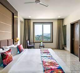 Indulge in a variety of delightful amenities designed for both fun and relaxation. Cool off in the outdoor swimming pools, including one specially for kids, or unwind at the spa when you need some pampering (extra charges apply). Savor delicious meals at the onsite restaurant, stay active at the fitness center, or simply relax on the sun deck or terrace, soaking in the beauty of Udaipur. The hotel also offers conveniences like a 24-hour front desk, room service, and shuttle service (additional charges), ensuring your needs are always met in style and comfort.