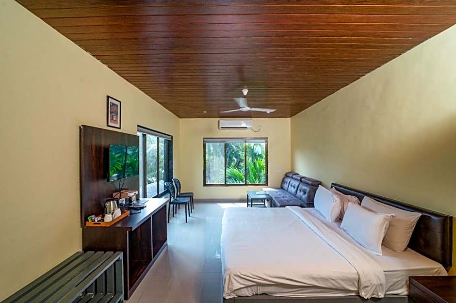 Set among garden views and shaded patios, the retreat offers a tranquil base for exploring Revadanda’s surroundings while enjoying a private pool, green spaces, and the comfort of free Wi-Fi and parking.