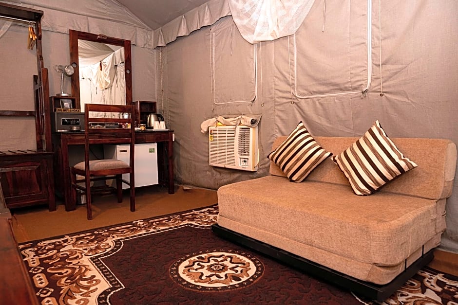 The tent features air conditioning, a private entrance, a balcony with garden views as well as a private bathroom boasting a shower.