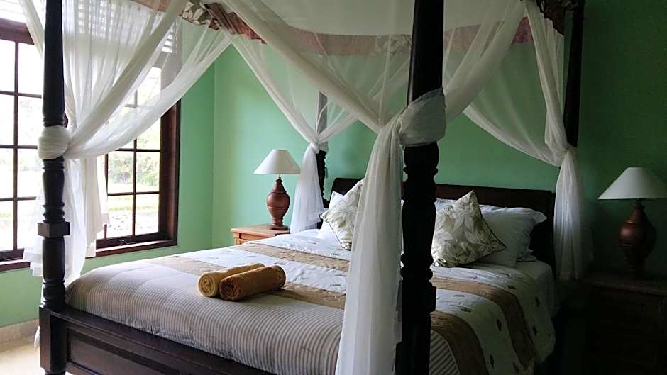 Accommodations span a range of styles, from Standard Rooms and Cottages to villas with multiple bedrooms and pool or ocean views. Some units feature a private entrance, garden views, a balcony, and a terrace, plus air conditioning and non-smoking options. Payments are cash only.
