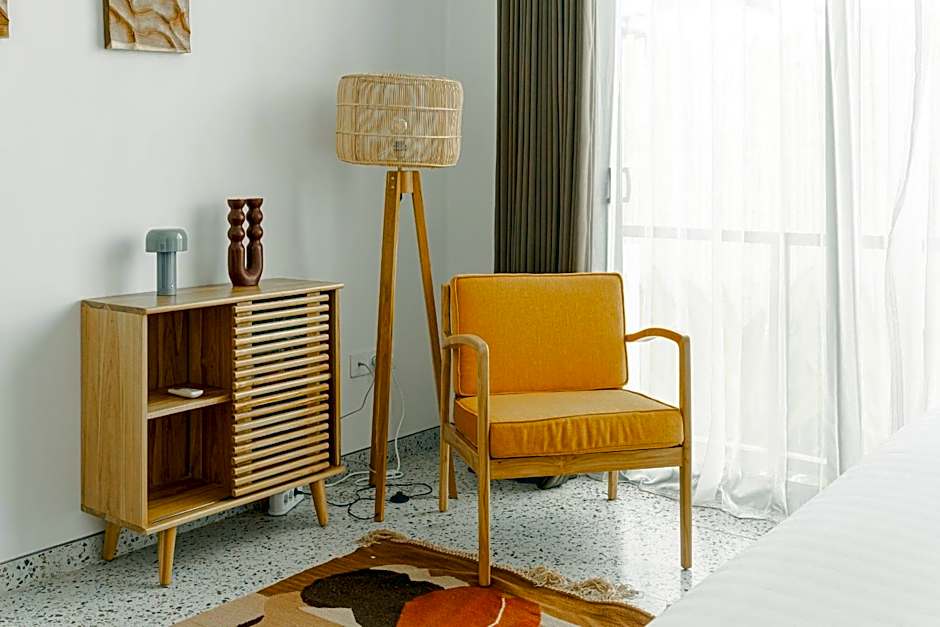Inside, a private entrance and soundproof rooms set a peaceful tone, while kitchen facilities with kitchenware, free toiletries, extra-long beds, balconies, and bidets add everyday ease. Added comforts include room service, a streaming service (like Netflix), air conditioning, a sun deck, and a terrace, with beach-ready touches such as umbrellas and chairs to keep days by the shore carefree.