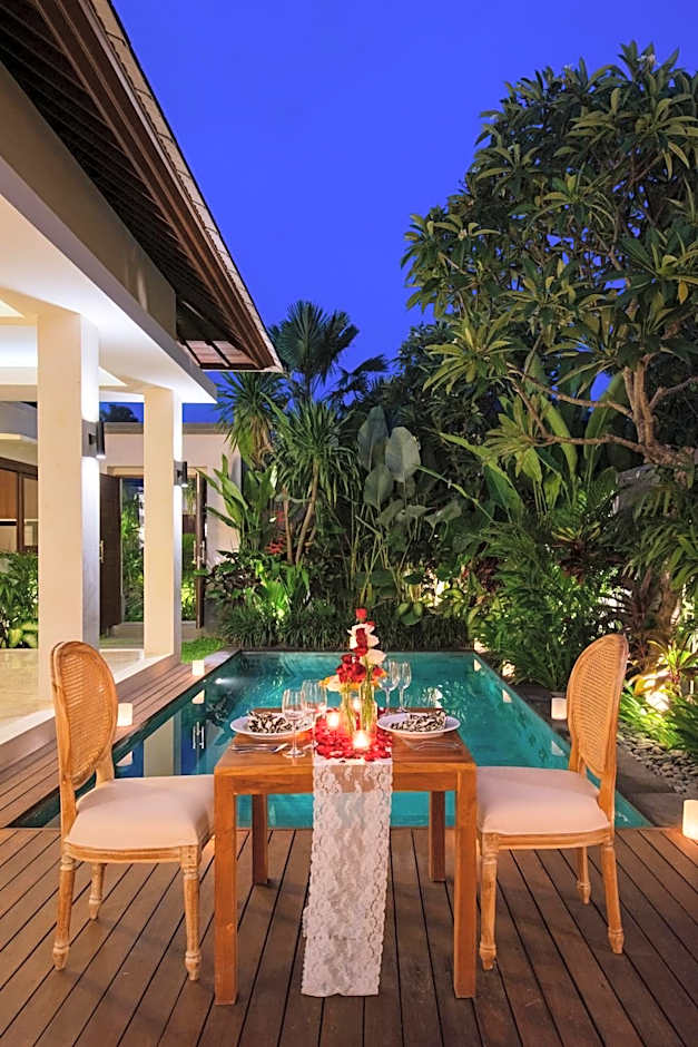 Featuring a living and dining space that opens up to its private pool, this villa is also fitted with a kitchenette and an private bathroom with bathtub. The villa is equipped with a flat-screen satellite TV and air conditioning.