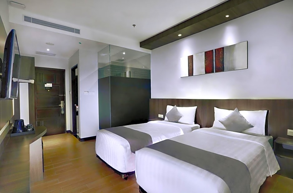 The hotel offers Deluxe Double Rooms with a king size bed, accommodating 2 adults and 1 child. Smoking is not allowed in these rooms. The Superior Double or Twin Rooms come with a queen size bed and two twin beds, accommodating 2 adults and 1 child. These rooms also do not allow smoking. There is also a Superior Double or Twin Room with City View that accommodates 2 adults, without any children, and also does not allow smoking.