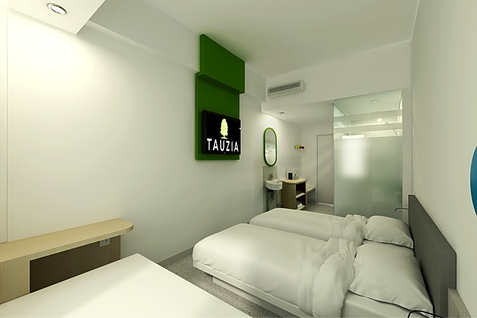 The hotel offers POP! Double or Twin Rooms at Hotel Festival Citylink in Bandung. These rooms can accommodate 2 adults and 1 child, featuring 1 Queen size bed and 2 Twin beds in a 161 sqft space. Smoking is not allowed in these rooms.