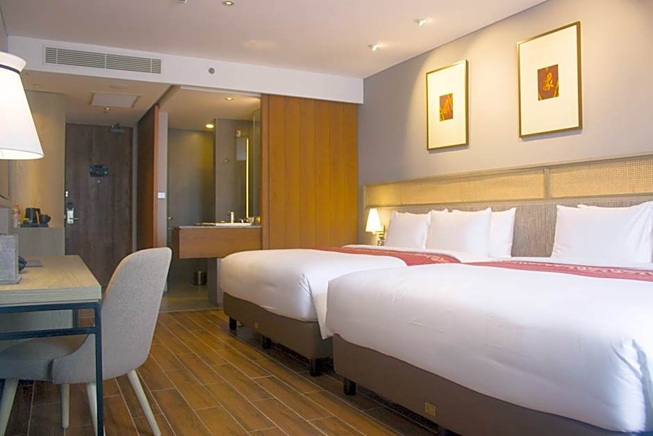 The Kokoon Hotel Banyuwangi offers a variety of room types, including Deluxe Double or Twin Rooms, Junior Suites, and Family Double Rooms. All rooms are non-smoking and can accommodate 2 adults. The Deluxe Double or Twin Rooms have a room size of 280 sqft and feature either a queen size bed or a combination of a queen size bed and twin beds. The Junior Suite has a larger room size of 560 sqft and also features a queen size bed. The Family Double Room has a room size of 344 sqft and is equipped with two queen size beds.