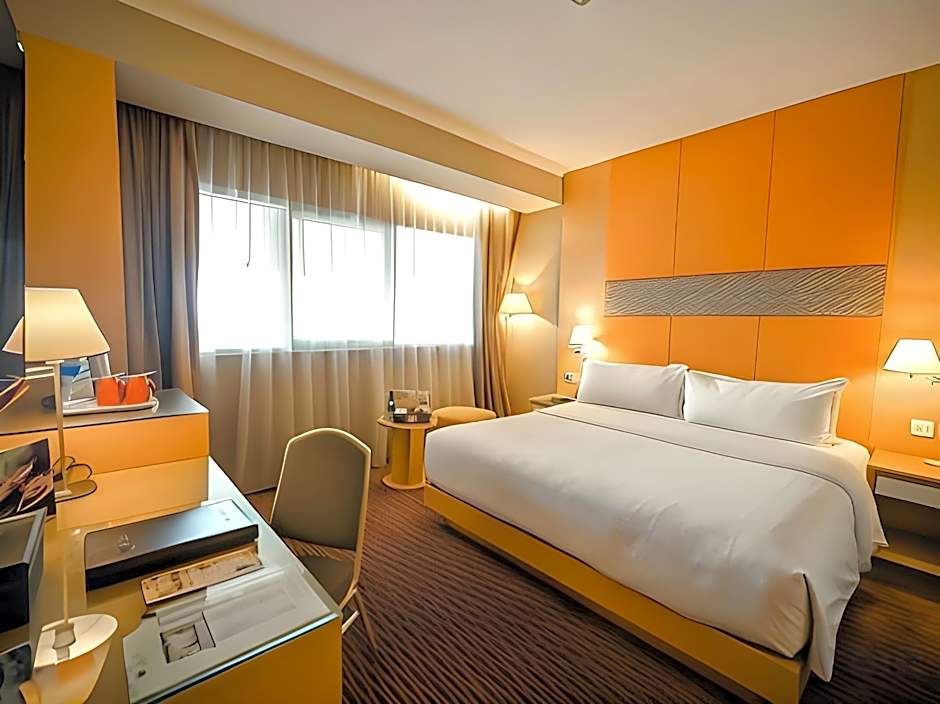 At All Sedayu Hotel Kelapa Gading, guests can choose from Deluxe Double Rooms with a Queen size bed, Standard Twin Rooms with either a King size bed or two Twin beds, and Superior Double Rooms with a King size bed. All rooms have a room size ranging from 312 to 334 sqft and do not allow smoking. The rooms can accommodate either 2 adults or 2 adults with 1 child, depending on the room type.