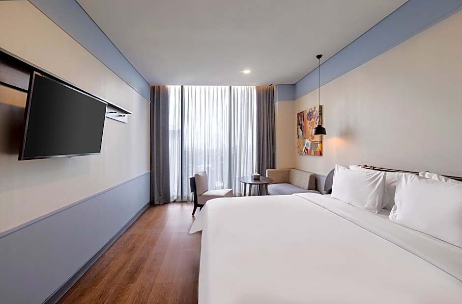 ARTOTEL Hub Simpang Temu Jakarta is a four-star hotel in Jakarta, located about 1,7mi from the city center. Nestled in the Dukuh Atas area of Menteng, this stylish property blends contemporary flair with Indonesian hospitality, inviting travelers to enjoy a lively stay in the capital.