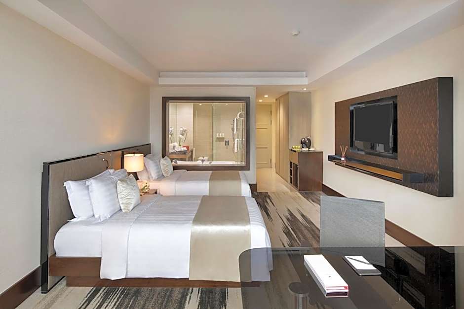 This double room features a mini-bar, air conditioning and soundproofing. Red Level benefits include: - Welcome drink - Buffet breakfast in the Lounge from 06:00-10:00 - Afternoon tea from 14:00-17:00 and evening cocktails from 18:00-21:00 - Personalized express check-in/out - One-time, 2-piece clothing ironing - Landline local calls - WiFi - Two-hour meeting room usage, subject to availability - 20% discount on business center services, terms and conditions apply