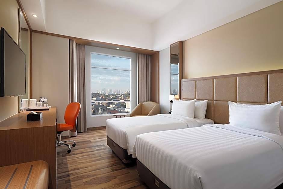 Horison Ciledug Jakarta offers Deluxe Double or Twin Rooms that can accommodate 2 adults and 1 child. The rooms feature a choice of either two twin beds or one king-size bed. Smoking is not allowed in these 269 sqft rooms.