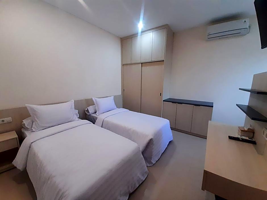 Available room configurations include Room - 2 Twin, View (258 sqft) with two twin beds and a view; Room - 2 Twin (size not listed) with two twin beds; Deluxe, 2 Twin (215 sqft) with two twin beds; Twin Room with a single twin bed; Deluxe (215 sqft) with one queen-size bed. All spaces are non-smoking.