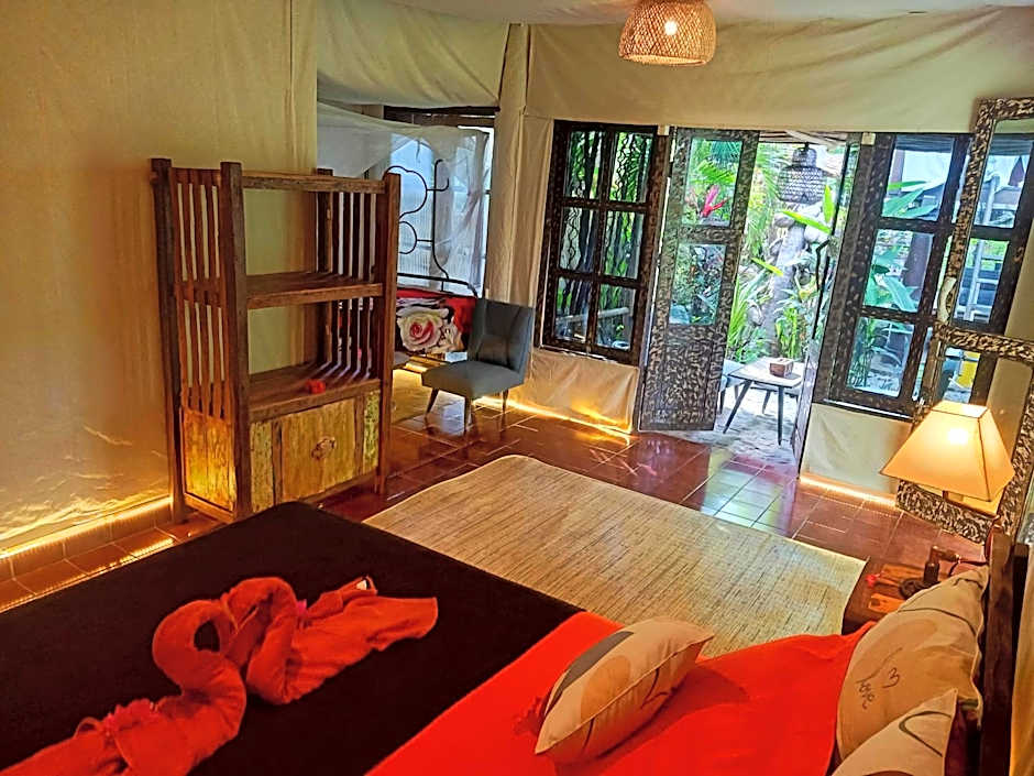 FunkyPlace’s on-site restaurant, also called FunkyPlace, blends traditional and modern ambiances while serving American, Indonesian, Asian, International, and European dishes. Terrace and garden views accompany every bite, and a bar provides a relaxed spot to unwind after a day by the sea. Payment is welcomed in cash or with Mastercard, JCB, and Visa.