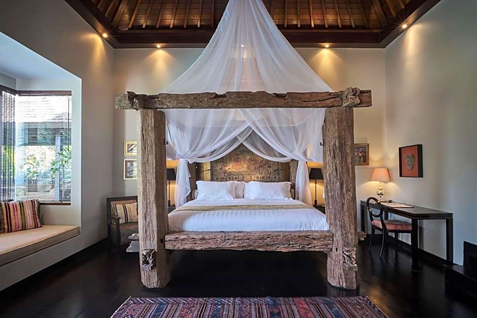 This superbly spacious villa comes with a large wooden patio, a gazebo, and one or two private swimming pools with breathtaking view of the ocean. This villa is decorated with collections of antiques and one or two luxurious bathrooms featuring an indoor bathtub and an open-air shower. Guests can enjoy a relaxing afternoon at the gazebo by the pool.