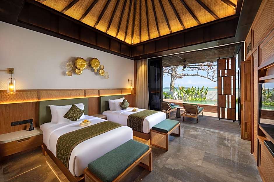 Experience the epitome of luxury at Sumitra Luxury Villas & Resort by Pramana, a lavish 5-star hotel located in Sanur, Indonesia. Nestled just 2,7mi away from the vibrant city center, this beachfront hotel offers a serene oasis for travelers looking to unwind in style. With 224 reviews boasting its excellence, you can expect top-notch service and facilities during your stay.
