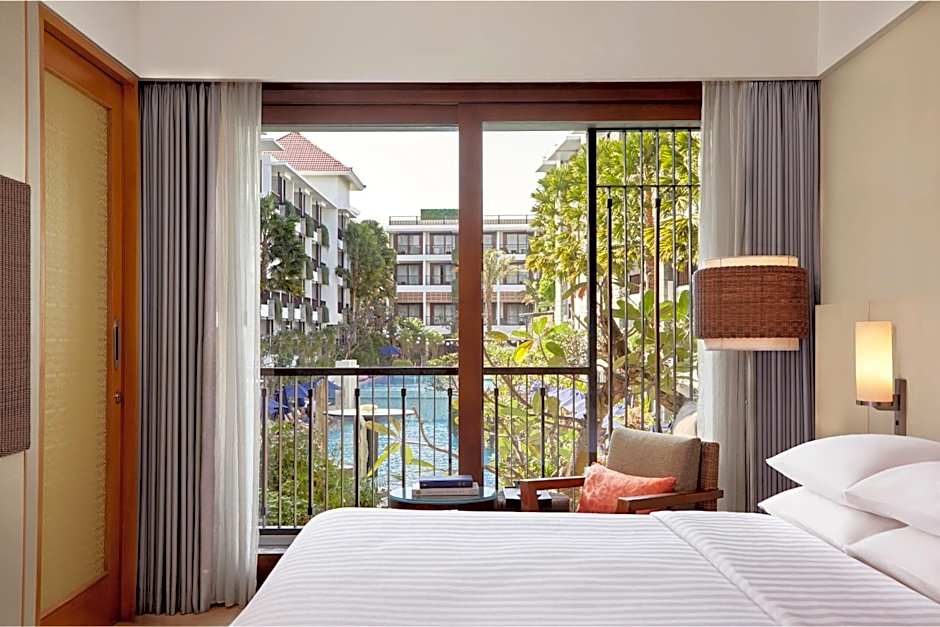This air-conditioned room has a private balcony overlooking the three-tiered expansive pool.