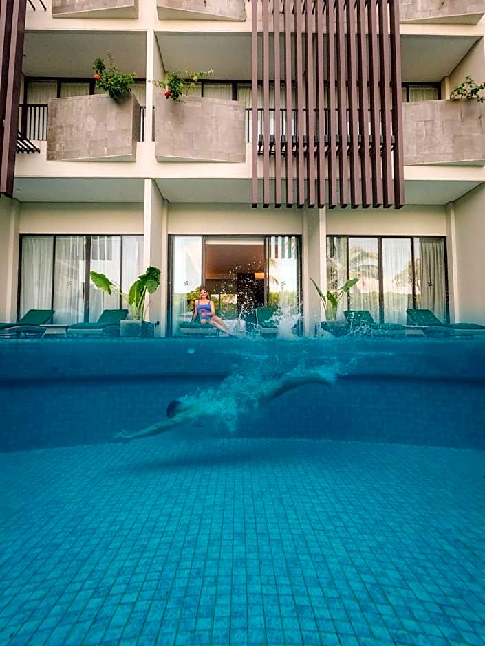As you step into the Four Points by Sheraton Bali, Seminyak, you'll be greeted by a blend of warmth and hospitality that instantly makes you feel like part of the family. Dive into relaxation at the shimmering outdoor swimming pool, where the shallow end is perfect for both splashing about and soaking up the sun on a comfy lounge chair. You can sip on a refreshing cocktail or juice from the poolside bar while listening to the soothing sounds of the nearby waves. This is not just a place to stay—it’s an experience meant to lift your spirits and celebrate the island's laid-back charm!