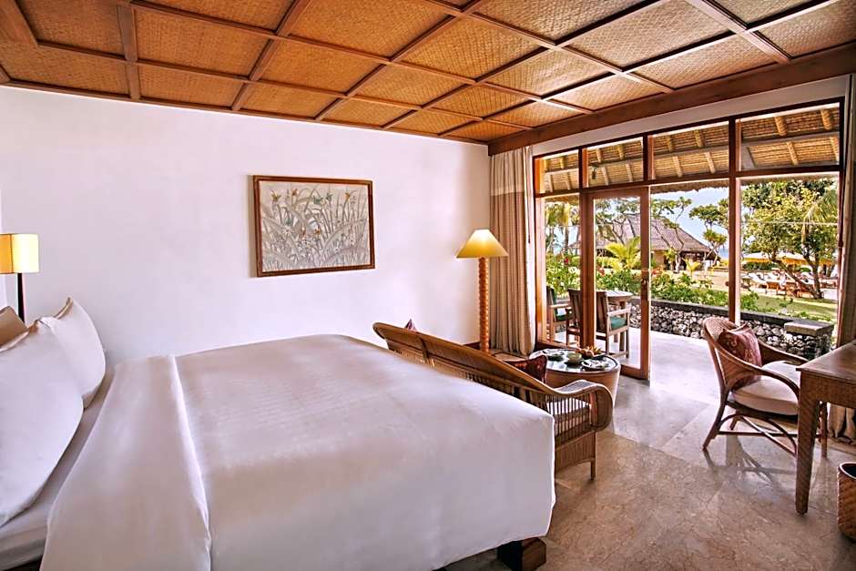 From dawn to dusk, this beachfront haven hums with Bali’s easygoing charm. The outdoor pool glitters under the tropical sun, while the on-site bar offers a cooling retreat and the Kura kura restaurant serves European flavors in a romantic ambiance for a memorable dinner.