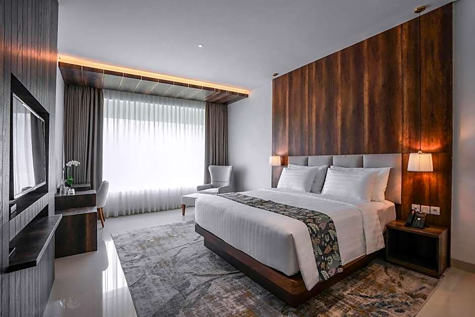 On-site dining is led by Restoran #1, offering a Modern ambiance with American cuisine. Payment options are cash only. Room options include Deluxe Double Room, Executive Twin, Executive Balcony, Deluxe Executive, and King Room with Mountain View, providing a range of choices for couples and families alike.