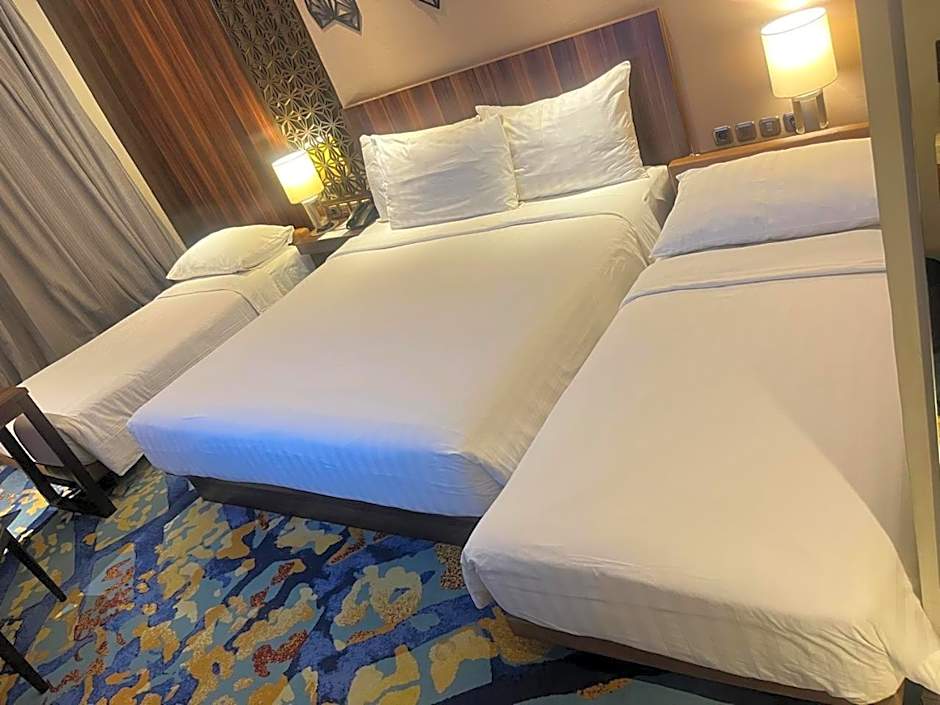 Room options span Deluxe and multiple variants, including Deluxe with City View, Deluxe with No Window, and Deluxe Triple, as well as Quadruple Room with Sea View and various suites. Suites such as Junior Suite and Executive Suite offer larger layouts, alongside family-oriented configurations like Family Deluxe. With a diverse mix of spaces, this hotel accommodates solo travelers, couples, and groups seeking comfortable stays in Tangerang.