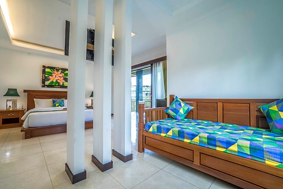 At Gita Maha Ubud Hotel, they offer Deluxe Rooms and Junior Suites with Balcony. The Deluxe Rooms have a room size of 484 sqft and can accommodate 2 adults and 1 child. Smoking is not allowed in these rooms and they have 1 Queen size bed. The Junior Suites with Balcony are larger, with a room size of 592 sqft and also accommodate 2 adults and 1 child. Smoking is not allowed in these suites and they have 1 King size bed.