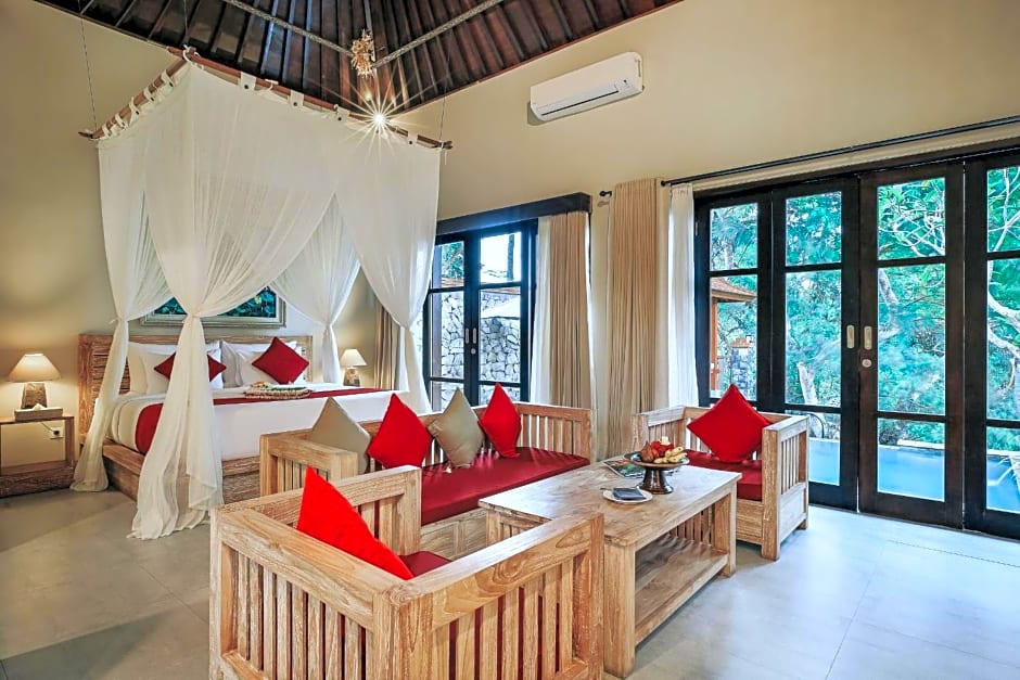 Treat yourself to the resort’s array of luxurious amenities designed for ultimate relaxation and convenience. Lounge around the outdoor swimming pool or soak in the hot tub after a rejuvenating spa session (extra charges). Sip cocktails at the on-site bar, unwind on the sun deck, or enjoy a soothing massage—also paid separately—to pamper your senses. For explorers, the resort’s tour desk and complimentary shuttle services make it easy to discover the beauty of Ubud and its surroundings, while kids’ meals and babysitting/child services add family-friendly comforts.