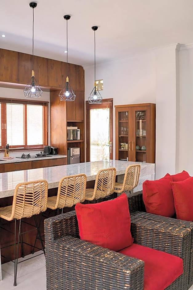 Stretch your legs and make a splash in the outdoor swimming pool, where relaxation is just a dip away. With its shallow end, it’s a great place for kids to enjoy as parents kick back in a sun lounger, cocktail in hand. Picture yourself floating under the warm Balinese sun, surrounded by lush greenery—'paradise' feels like an understatement! Whether you choose to take a refreshing swim to start your day or unwind with a book as the sun sets, the pool is an inviting escape to savor every moment of your vacation.