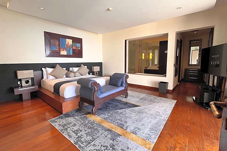This five-bedroom villa presents views of the Indian Ocean with two cliff-side outdoor infinity pools and two outdoor decks. This villa also features 2 separate living rooms, a private dining room, 2 gazebos, all surrounded by tropical garden. There are also a media/cinema room with Apple TV facility, a children activity room, as well as wine cellar and cigar room. This villa offers: A 24-hour butler service Drop and Pick up to Uluwatu area and Returned airport shuttle for minimum stay of 4 nights Daily turn down service (minimum stay of 2 nights)