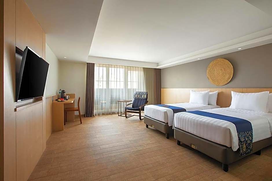 The Aveta Hotel Malioboro offers a variety of room types including suites, executive rooms, deluxe balcony rooms, superior rooms, premier rooms with a view, family triple rooms, and family quadruple rooms. Smoking is not allowed in any of the rooms. The rooms can accommodate 2 adults and 1 child, except for the family triple room which can accommodate 3 adults and 1 child, and the family quadruple room which can accommodate 4 adults and 1 child. Bed sizes vary, with options for queen, twin, and king size beds.